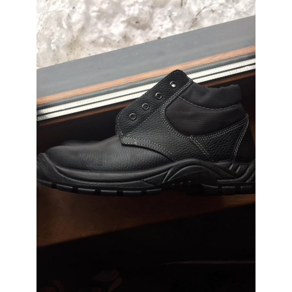 Ботинки кожаные на шнурках, на подкладке, с мягкой вставкой и глухим клапаном из искусственной кожи, жёстким подноском, основной стелькой из нетканого стелечного материала, литьевого метода крепления, полиуретановая подошва: маслобензостойкая, износоустойчивая, кислотощелочестойкая.
